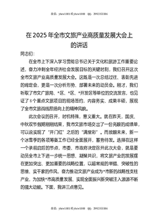全市文旅产业高质量发展大会上的讲话.docx