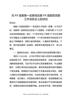在XX县委第一巡察组巡察XX县医院党委工作动员会上的讲话.docx