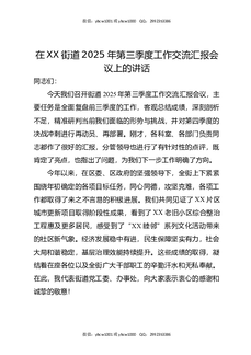 在XX街道2025年第三季度工作交流汇报会议上的讲话.docx