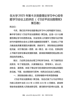 在大学2025年第6次党委理论学习中心组专题学习会议上的讲话(《习近平谈治国理政》第五卷).docx