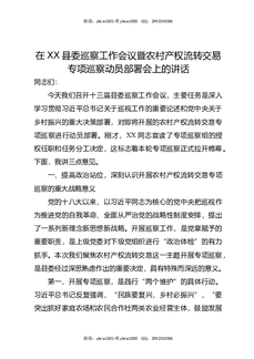 在XX县委巡察工作会议暨农村产权流转交易专项巡察动员部署会上的讲话.docx