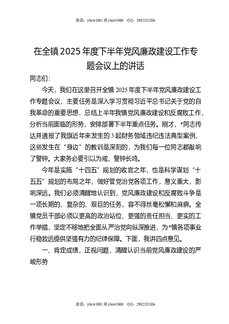 在全镇2025年度下半年党风廉政建设工作专题会议上的讲话.docx