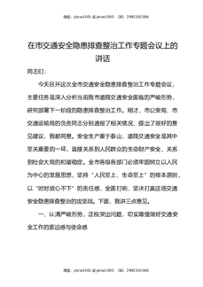 在市交通安全隐患排查整治工作专题会议上的讲话.docx