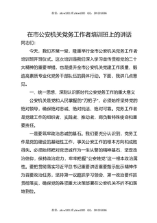在市公安机关党务工作者培训班上的讲话.docx