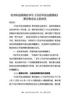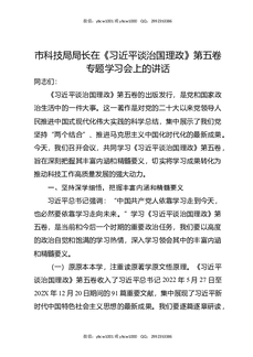 在市科技局局长学习《习近平谈治国理政》第五卷会议上的讲话.docx