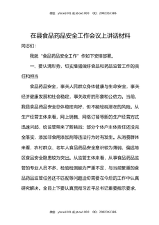 在县食品药品安全工作会议上讲话材料.docx