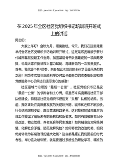 全区社区党组织书记培训班开班式上的讲话.docx
