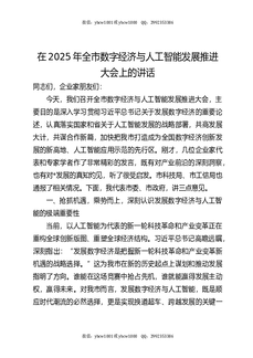 全市数字经济与人工智能发展推进大会上的讲话.docx