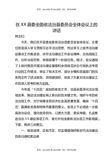 在XX县委全面依法治县委员会全体会议上的讲话.docx