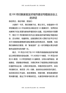 在XX市妇联家庭友好城市建设专题座谈会上的讲话.docx