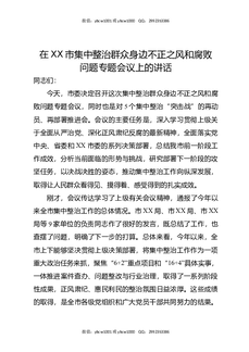 在XX市集中整治群众身边不正之风和腐败问题专题会议上的讲话.docx