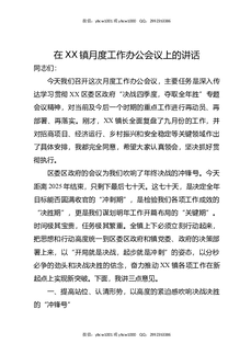 在XX镇月度工作办公会议上的讲话.docx