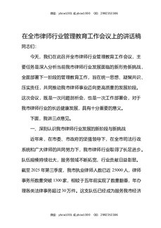 在全市律师行业管理教育工作会议上的讲话稿.docx
