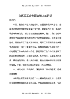 在区总工会专题会议上的讲话.docx