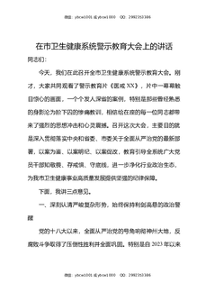 在市卫生健康系统警示教育大会上的讲话.docx