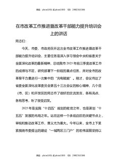 在市改革工作推进暨改革干部能力提升培训会上的讲话.docx