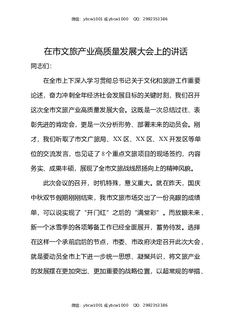 在市文旅产业高质量发展大会上的讲话.docx