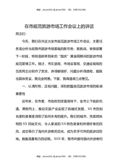 在市规范旅游市场工作会议上的讲话.docx