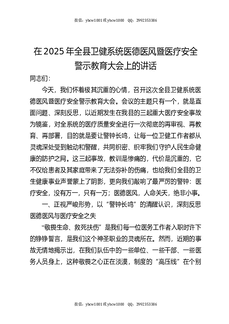 全县卫健系统医德医风暨医疗安全警示教育大会上的讲话.docx