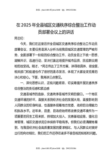 全县城区交通秩序综合整治工作动员部署会议上的讲话.docx