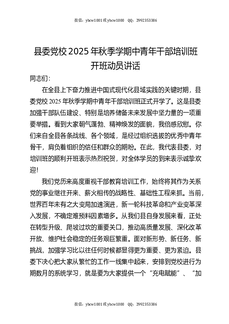 县委党校2025年秋季学期中青年干部培训班开班动员讲话.docx