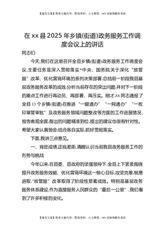 在XX县2025年乡镇(街道)政务服务工作调度会议上的讲话.docx