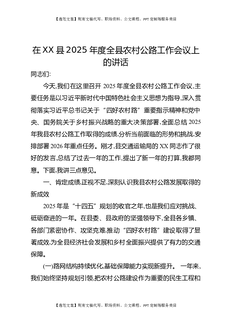 在XX县2025年度全县农村公路工作会议上的讲话.docx