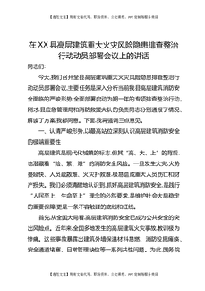 在XX县高层建筑重大火灾风险隐患排查整治行动动员部署会议上的讲话.docx