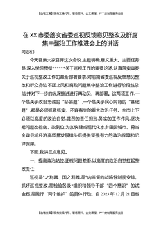 在XX市委落实省委巡视反馈意见整改及群腐集中整治工作推进会上的讲话.docx
