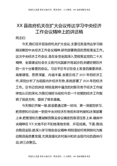 XX县政府机关在扩大会议传达学习中央经济工作会议精神上的讲话稿.docx