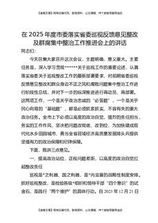 在2025年度市委落实省委巡视反馈意见整改及群腐集中整治工作推进会上的讲话.docx