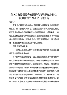 在XX市委常委会专题研究加强新就业群体服务管理工作会议上的讲话.docx