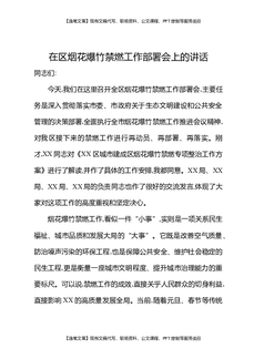 在区烟花爆竹禁燃禁放工作部署会上的讲话.docx