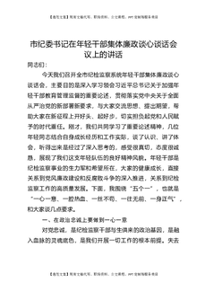 市纪委书记在年轻干部集体廉政谈心谈话会议上的讲话.docx