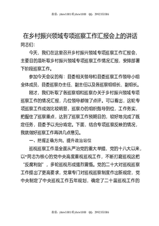 在乡村振兴领域专项巡察工作汇报会上的讲话.docx