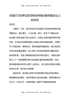 在医疗卫生单位防范电信网络诈骗专题会议上的讲话.docx
