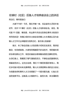 在镇村社区后备人才培养座谈会上的讲话.docx