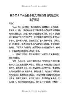 水业党总支党风廉政建设专题会议上的讲话.docx