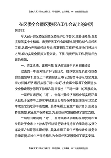在区委全会暨区委经济工作会议上的讲话.docx