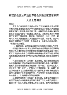 在区委全面从严治党专题会议暨全区警示教育大会上的讲话.docx