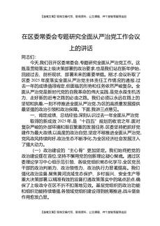 在区委常委会专题研究全面从严治党工作会议上的讲话.docx