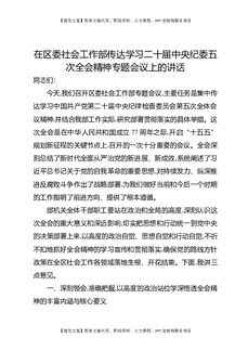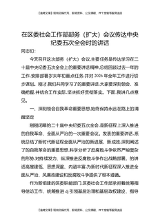在区委社会工作部部务(扩大)会议传达中央纪委五次全会时的讲话.docx