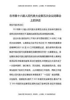 在市第十六届人民代表大会第五次会议闭幕会上的讲话.docx