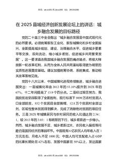 在2025县域经济创新发展论坛上的讲话:城乡融合发展的目标路径.docx