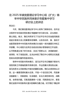 在2025年镇党委理论学习中心组(扩大)铸牢中华民族共同体意识专题集中学习研讨会上的讲话.docx