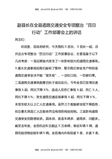 副县长在全县道路交通安全专项整治百日行动工作部署会上的讲话.docx