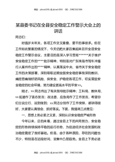 某县委书记在全县安全稳定工作警示大会上的讲话.docx