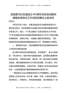 某县委书记在县成立60周年庆祝活动期间维稳安保信访工作动员部署会上的讲话.docx