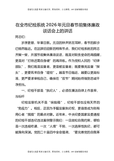 在全市纪检系统2026年元旦春节前集体廉政谈话会上的讲话.docx