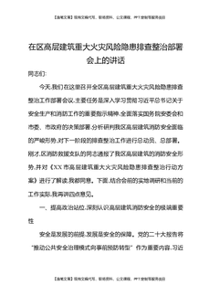 在区高层建筑重大火灾风险隐患排查整治部署会上的讲话.docx